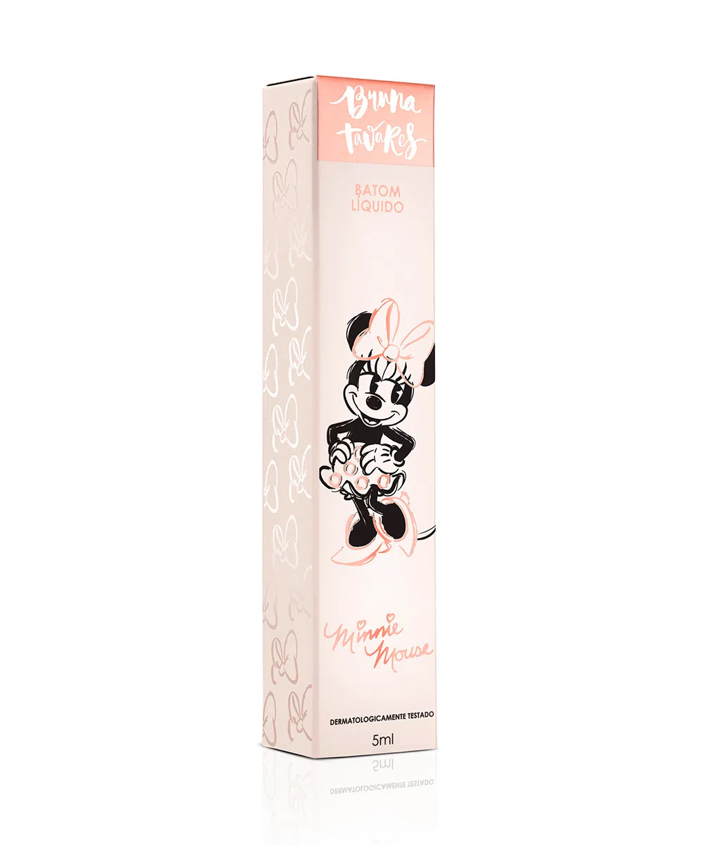 O batom líquido da coleção Minnie Mouse possui uma embalagem exclusiva com as orelhinhas e o clássico laço da musa atemporal da Disney. Um charme! A fórmula é ultra fina e confortável, garantindo um efeito liso e fosco aos lábios. Ela é enriquecida por modificadores de sensorial capazes de formar um filme flexível altamente durável nos lábios e conferir um toque sedoso com acabamento luxuoso. Além disso, contém Vitamina E que age como antioxidante biológico protegendo os constituintes celulares contra a oxidação.