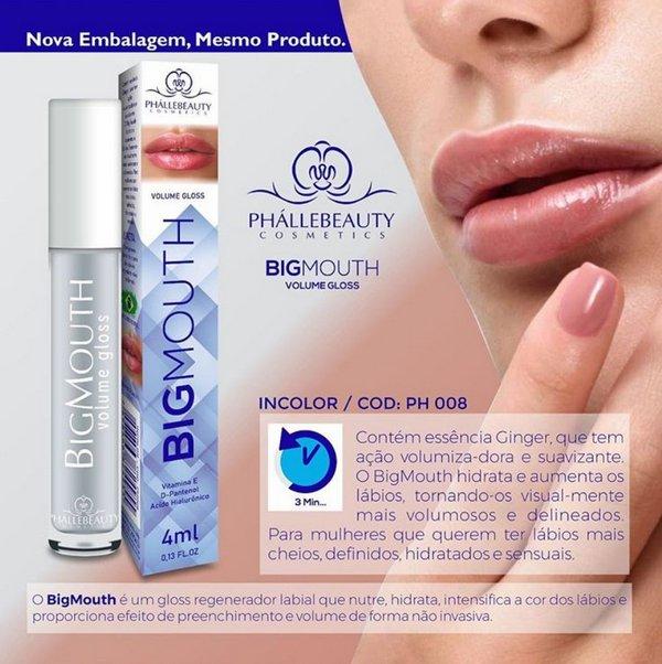O Gloss Labial BigMouth da Phalle Beauty é um gloss regenerador labial que nutre, hidrata, intensifica a cor dos lábios e proporciona efeito de preenchimento e volumede forma não invasiva.