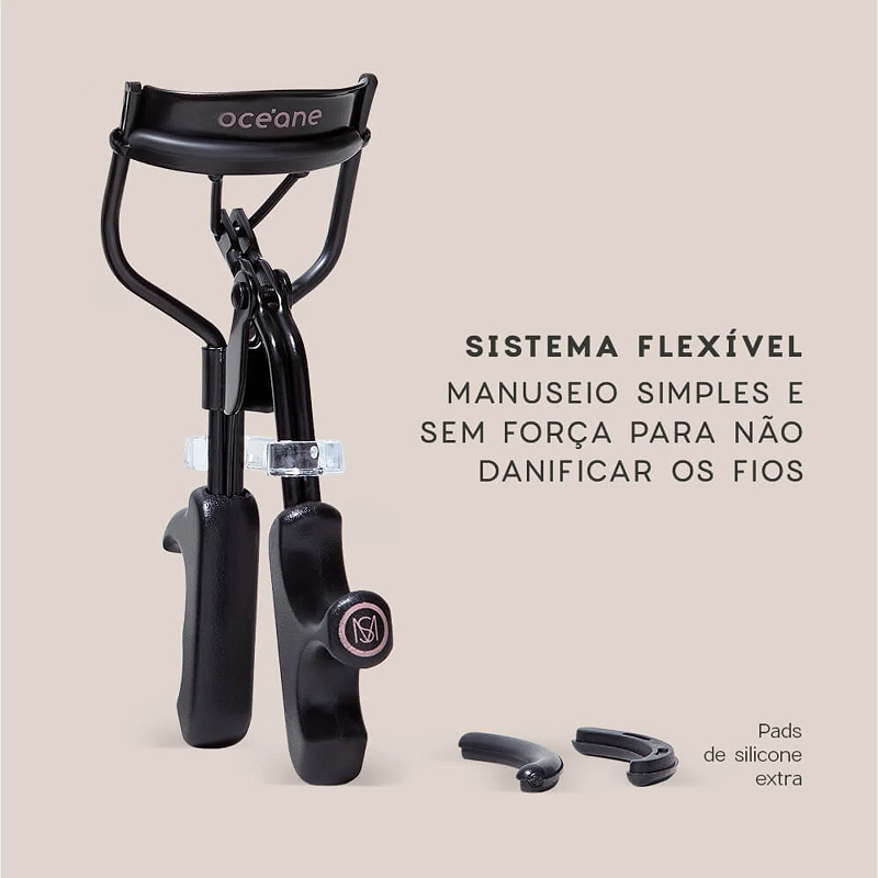 Sua estrutura é feita em aço inoxidável revestido na cor preta, o que dá um aspecto sofisticado ao seu acessório. Já a região curvadora é revestida com uma proteção de silicone conhecida como “pad”, que tem a função de proteger os cílios da quebra e também, evitar que você machuque sua pálpebra.