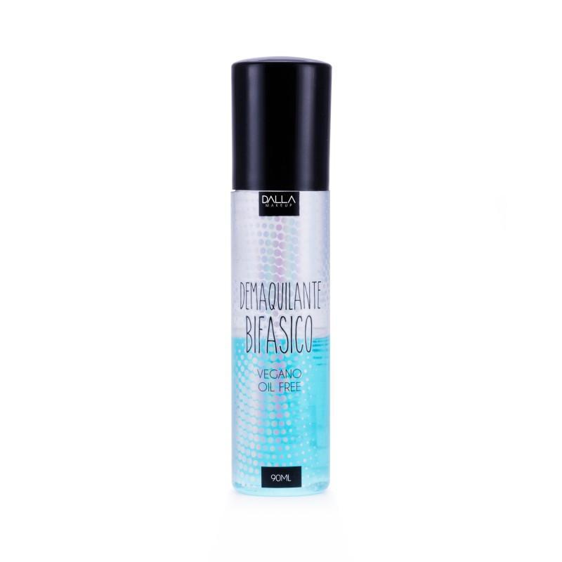 Demaquilante Bifásico da Dalla Makeup foi desenvolvido para remover maquiagens sem esforço. Sua fórmula a base de silicone não é oleosa e possui secagem rápida.