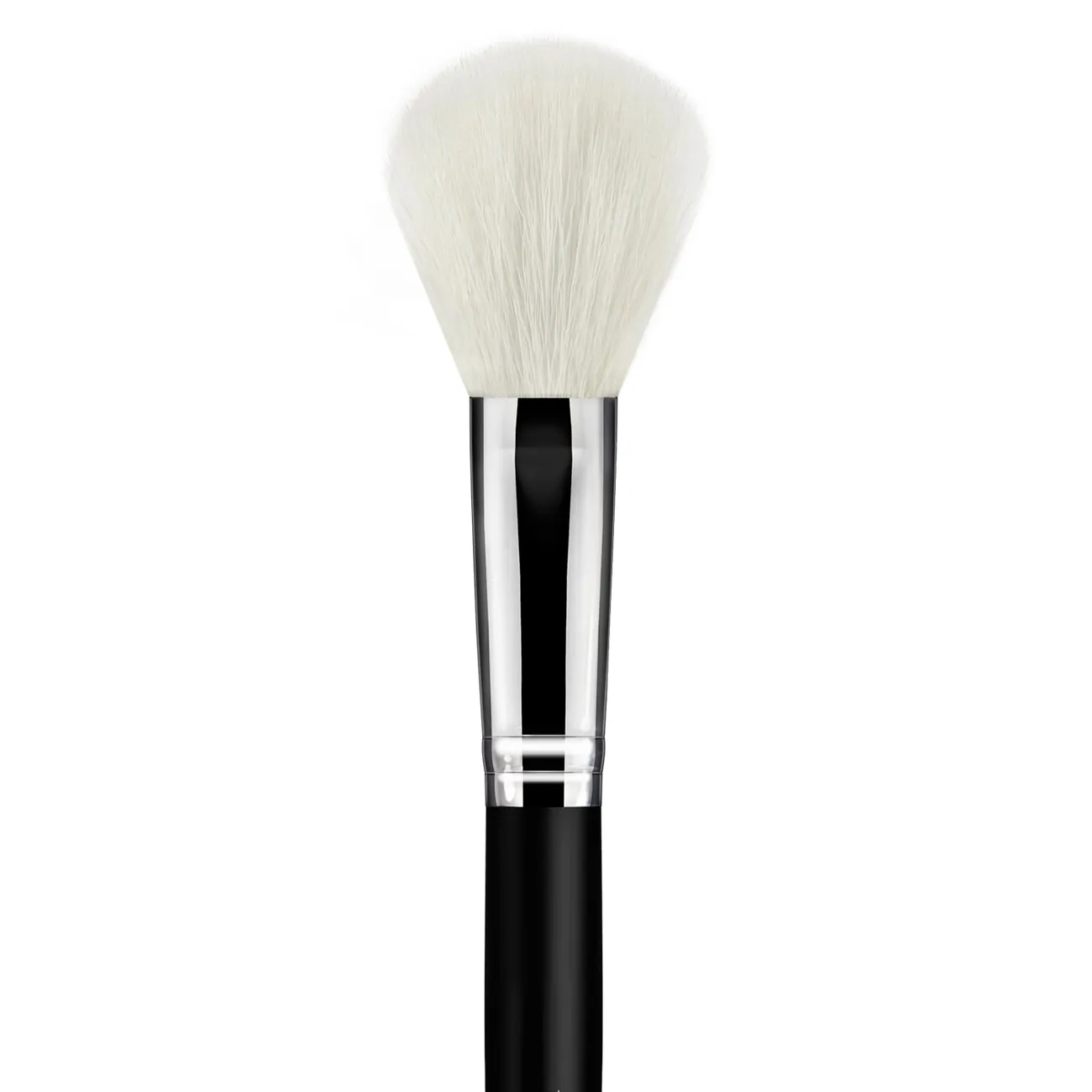 Aplicação de iluminador e blush. Pelos naturais de cabra DAYTECH Soft Hair, cabo de madeira com ponteira em cobre prata.