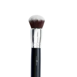 Pincel de cerdas naturais tamanho médio, para aplicação de iluminador e sombras em pó. Pelos naturais de cabra DAYTECH Soft Hair, cabo de madeira com ponteira em cobre prata.