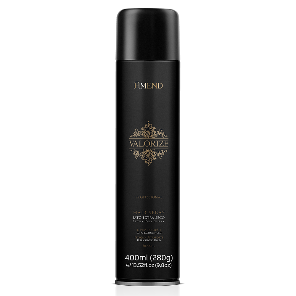 O Hair Spray Amend Valorize Ultraforte é um spray de fixação ultraforte de longa duração, ideal para definir e finalizar com alta performance qualquer tipo de penteado, mechas e franjas sem pesar nos fios. Possui alta resistência à umidade, realça o brilho e protege o cabelo através da combinação de Silicone. Não deixa resíduos no fio.