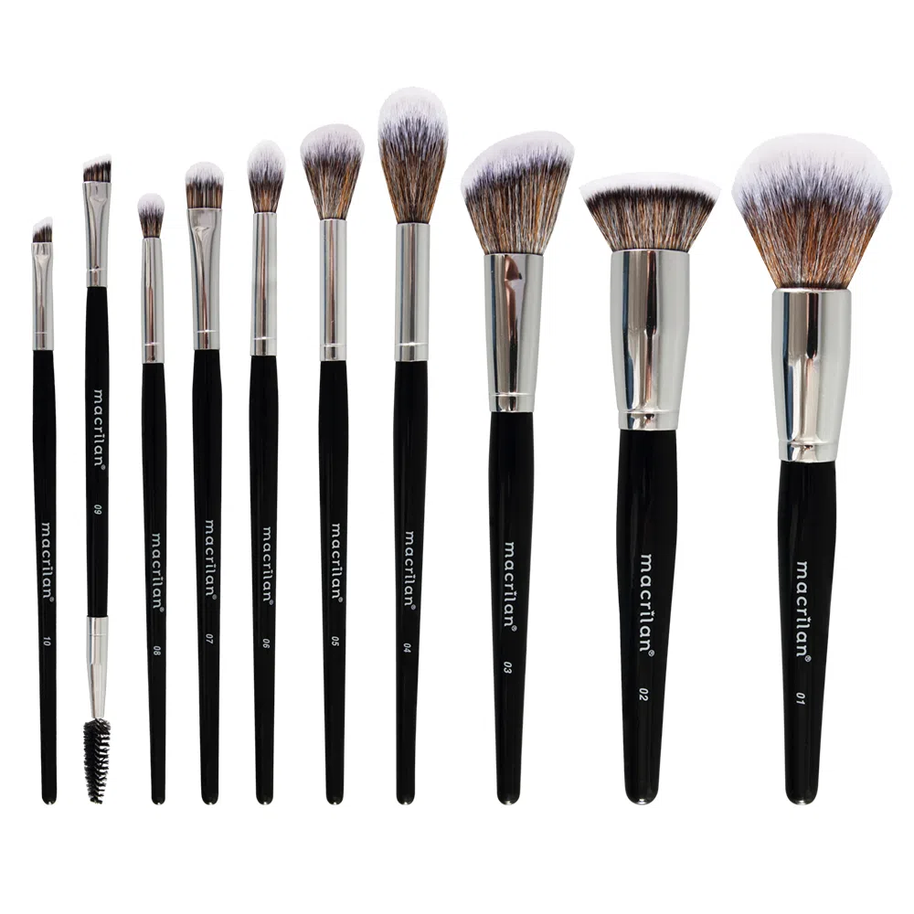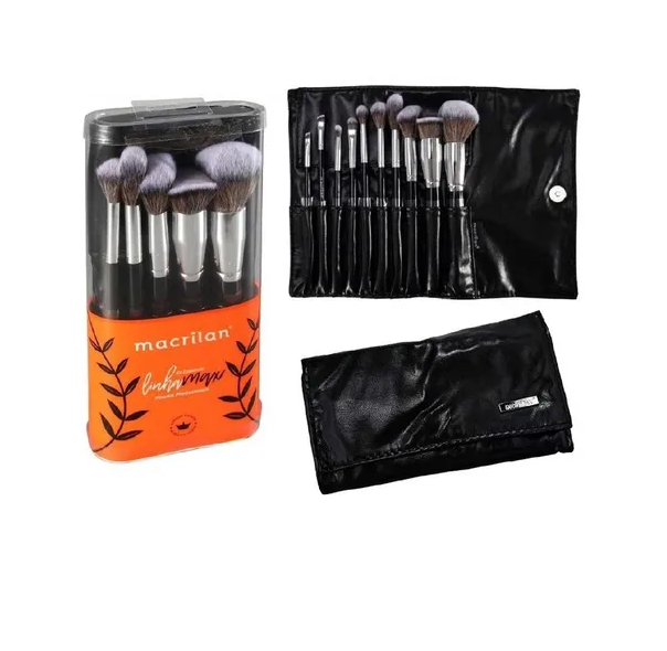 Kit Profissional Maxx A 100 da Macrilan feito com 10 pincéis profissionais para aplicação completa de maquiagem, tanto com produtos líquido, cremosos ou em pó. Os pincéis são fabricados com cerdas super macias e duplamente polidas. Os formatos especiais de cada pincel proporcionam um resultado profissional e impecável na maquiagem.