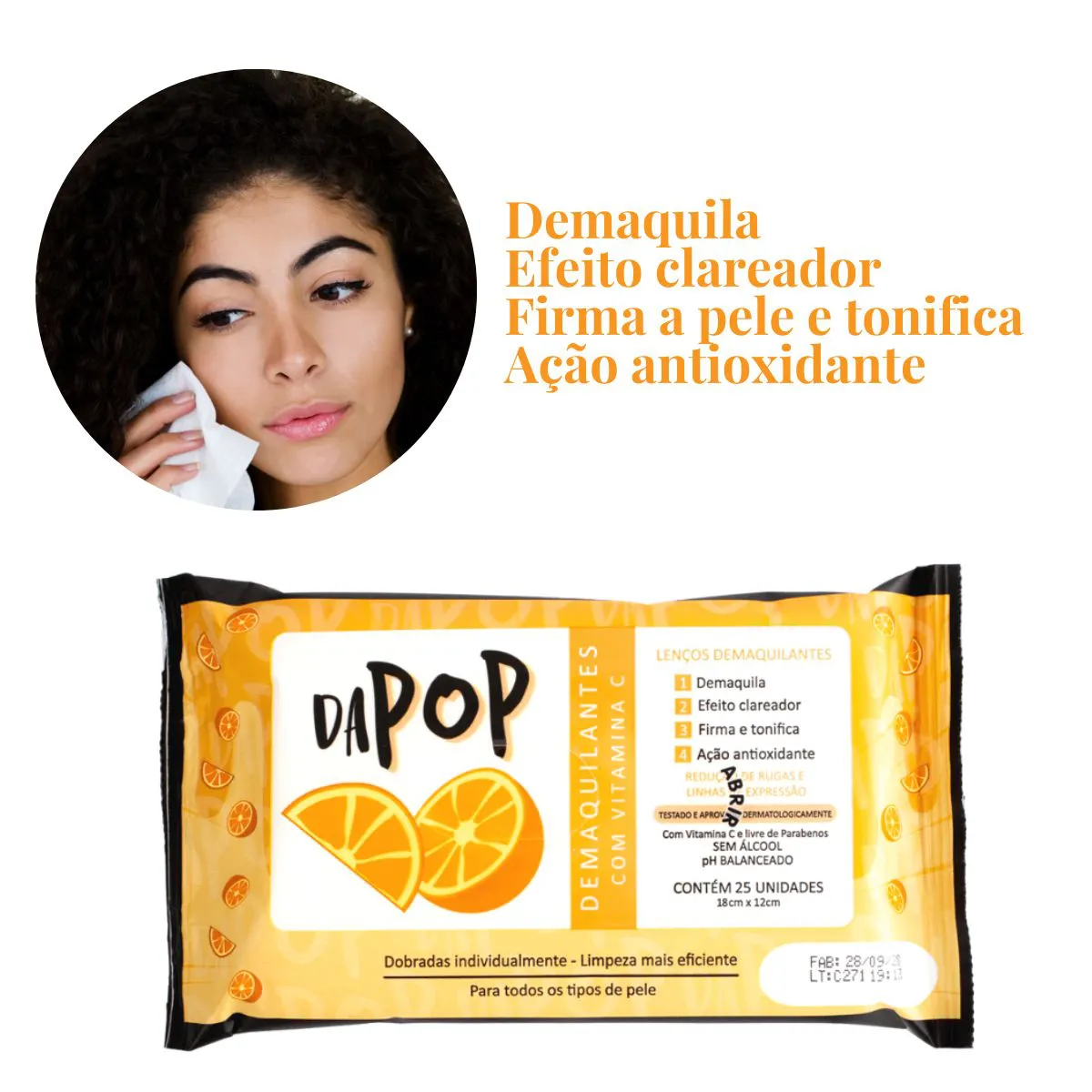 Lenço Demaquilante Vitamina C Dapop remove maquiagens