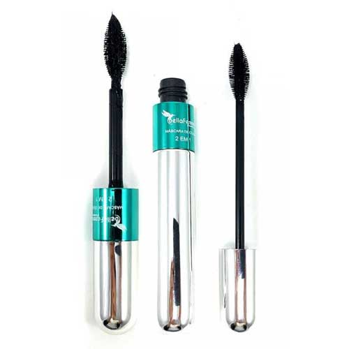 Rímel 4D com duas cerdas para aplicação, uma para dar um maior volume e outra para alongar, excelente qualidade que dá um toque especial no visual dos seus cílios, a prova d agua e com efeito 4D que deixará seus cílios lindos e volumosos.