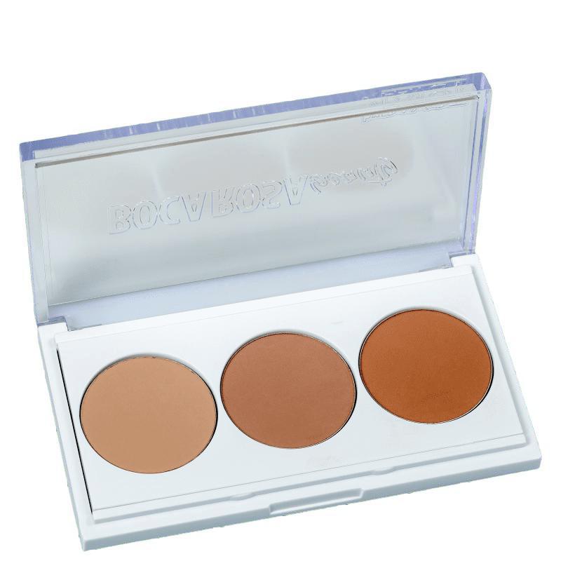 A paleta possibilita realizar etapas para definir e modelar todas as formas do rosto. São três tons para contorno, que darão inúmeras possibilidades na sua maquiagem. A paleta alcança uma gama de tons de pele e funciona para todos os tipos de pele.