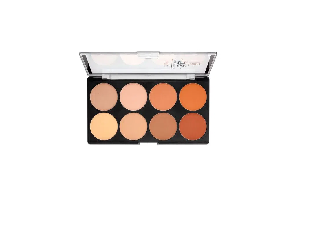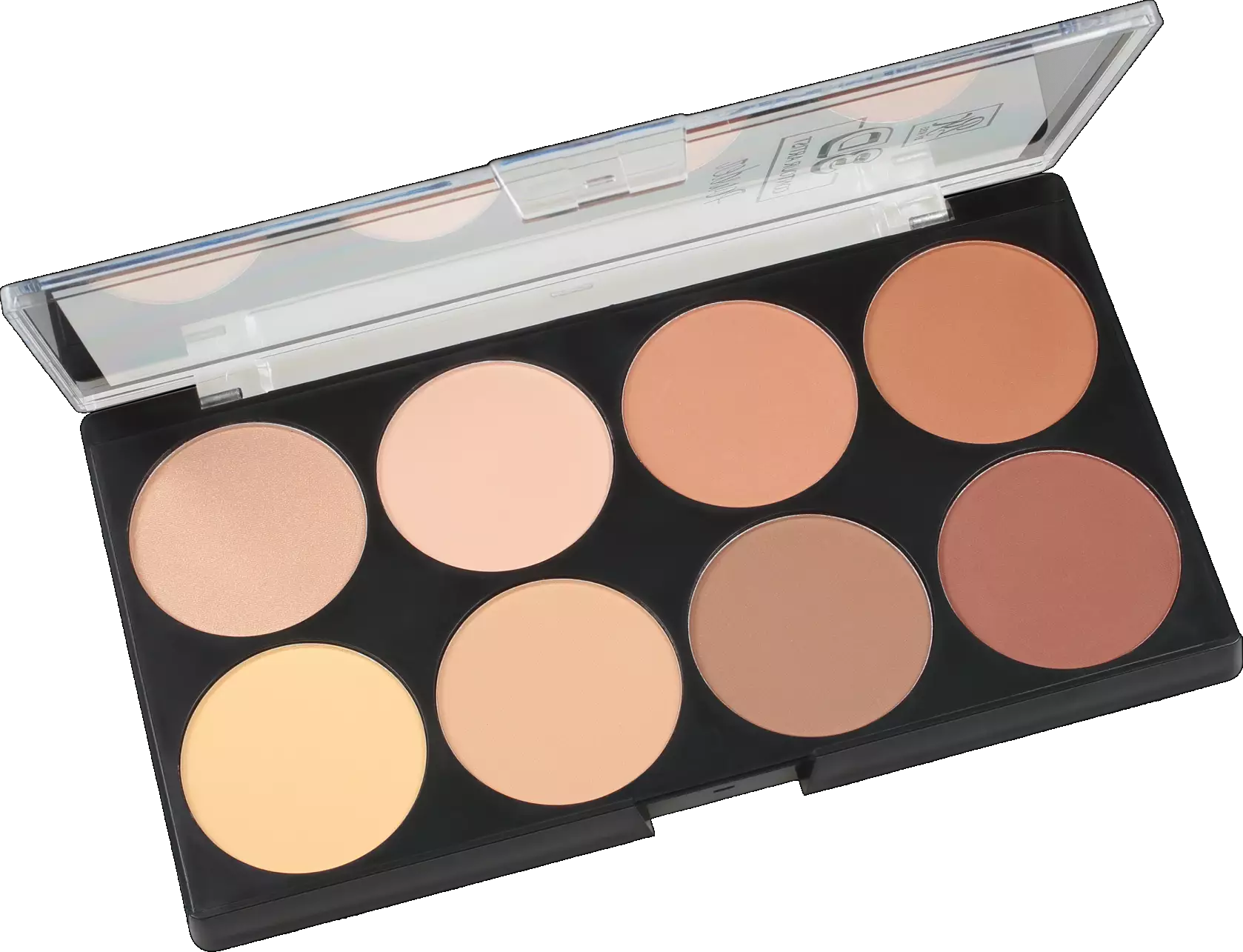 Paleta de contorno. Kiss New York Ruby Kisses 3D Contour Artist Powder possui 8 tons que definem o formato do rosto com um jogo de luz e sombra que destaca e esconde áreas específicas.