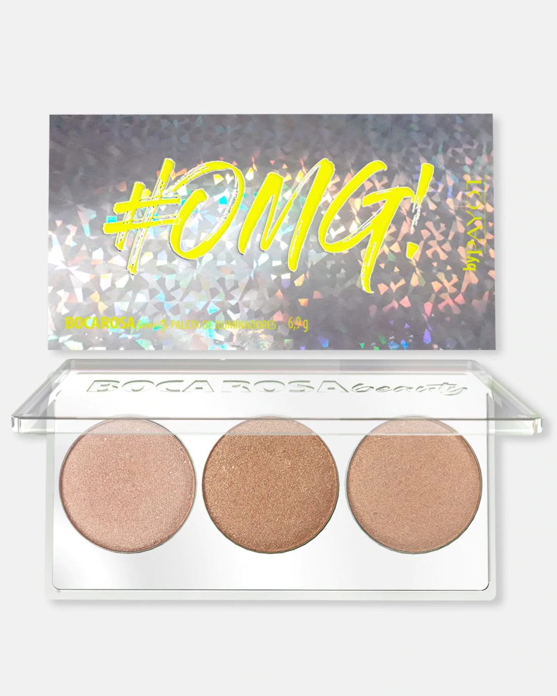 Paleta com 3 iluminadores champagne, rosé e dourado claro. Payot boca rosa paleta de iluminador omg realça áreas estratégicas do rosto enquanto deixa um glow impecável no visual. Com cores variadas, combina com diversos tons de pele.