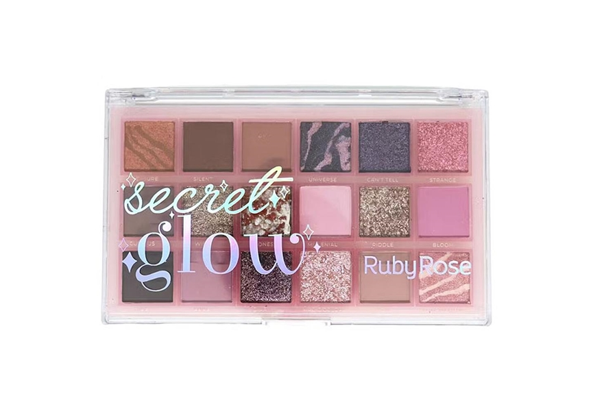 A Paleta de Sombras Secret Glow Ruby Rose é super versátil com 18 tons em diferentes texturas para criar olhos esfumados para qualquer ocasião.