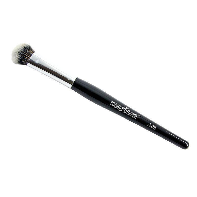 Pincel Macrilan A08, especialmente desenvolvido para aplicar e espalhar produtos em pó, como: sombra em pó e iluminador em detalhes na face e região dos olhos. Indicado também para aplicar primer nas pálpebras e corretivo. Feito com cerdas especiais para um acabamento suave e uma maquiagem impecável. Também é muito utilizado para fazer aquela rinoplastia no nariz hahaha