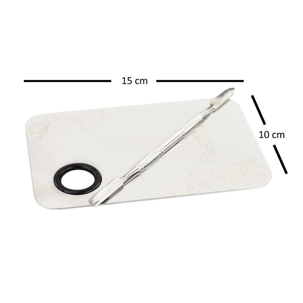 PLACA E ESPÁTULA INOX PARA MAQUIAGEM – MACRILAN
