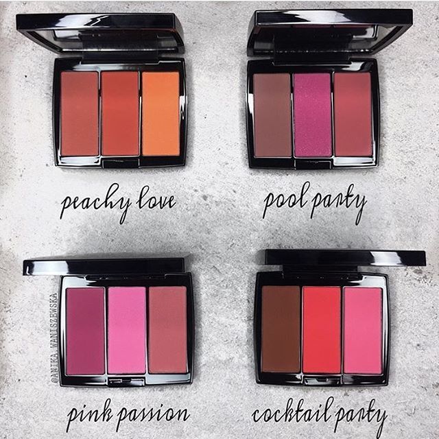 Três tons de blush por compacto.